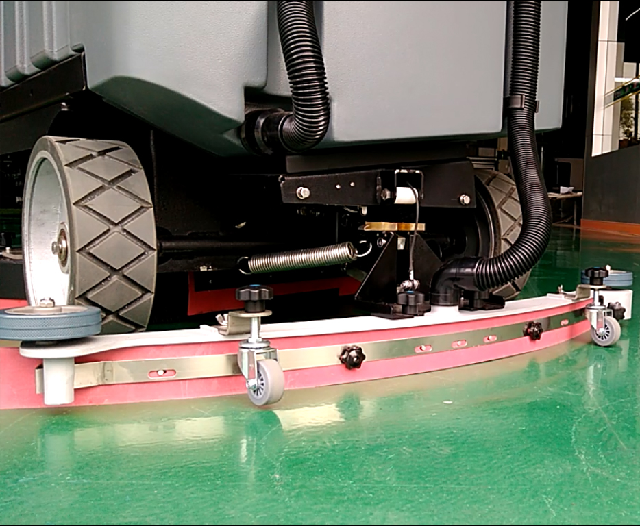 6、更換破損的洗地機刮條,調(diào)整洗地機吸水扒的角度,對于正確的使用,洗地機吸水扒應(yīng)根據(jù)洗地機刮條的磨損情況來調(diào)節(jié)其高度,在清洗的過程中,洗地機后刮條應(yīng)與地面呈現(xiàn)一定角度。